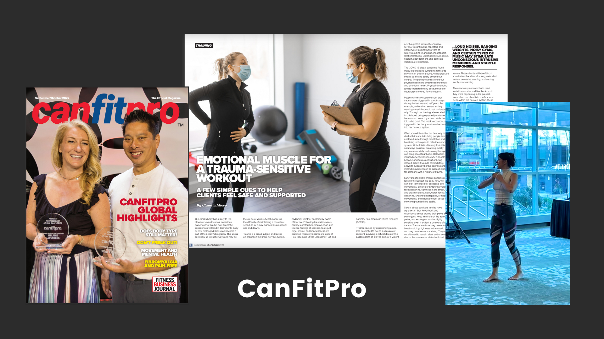Claudia presented three workshops at CanFitPro 2022! Her article, “Emotional Muscle for a Trauma-Sensitive Workout” was featured in CanFitPro’s Official Magazine.